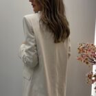 La blazer en color beige es un fondo de armario imprescindible por su versatilidad y elegancia atemporal. Su tono claro aporta luz al rostro y combina con facilidad tanto con looks formales como con estilismos más relajados. El tejido con mezcla de lino le da un acabado natural y ligero, ideal para entretiempo.
