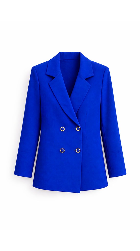 El Blazer Brixton Azul Klein es una prenda elegante y con mucha personalidad que aporta un toque sofisticado a cualquier look. Su diseño con solapa clásica y cierre cruzado con botones dorados crea una silueta estructurada y muy favorecedora, perfecta para estilismos elegantes y actuales.