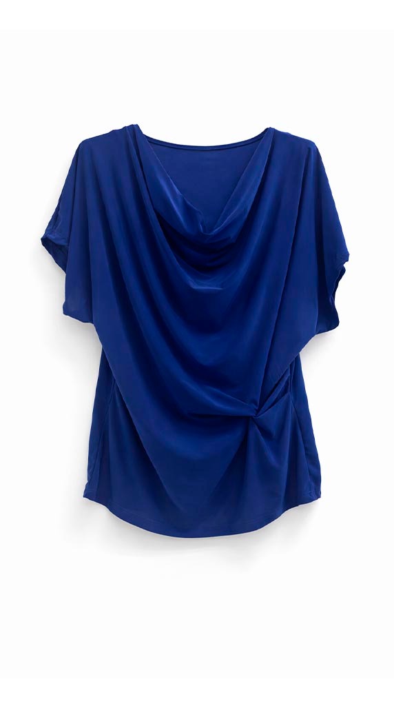 Blusa de diseño fluido con elegante escote drapeado que aporta movimiento y un efecto muy favorecedor en la zona del pecho. Su corte relajado y caída suave la convierten en una prenda cómoda, sofisticada y fácil de llevar.