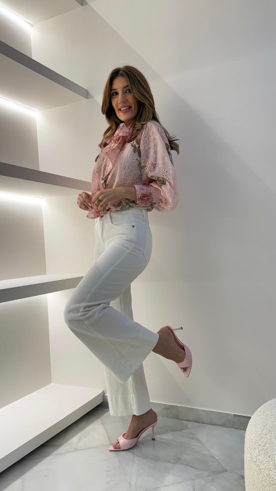 La Blusa Madeira Rosa destaca por su delicado estampado floral y su tejido calado, que aporta un aire romántico y muy femenino. El lazo en el cuello añade un toque elegante y especial, ideal para elevar cualquier look sin perder frescura. Su corte fluido se adapta cómodamente a diferentes siluetas, convirtiéndola en una prenda perfecta tanto para el día a día como para ocasiones más especiales durante la temporada de primavera y verano.