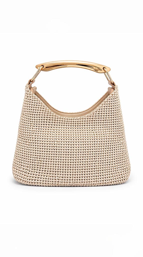 Su diseño con textura trenzada le da un acabado cuidado y con estilo, mientras que el asa rígida en dorado añade ese toque moderno y refinado que lo convierte en una pieza especial.
