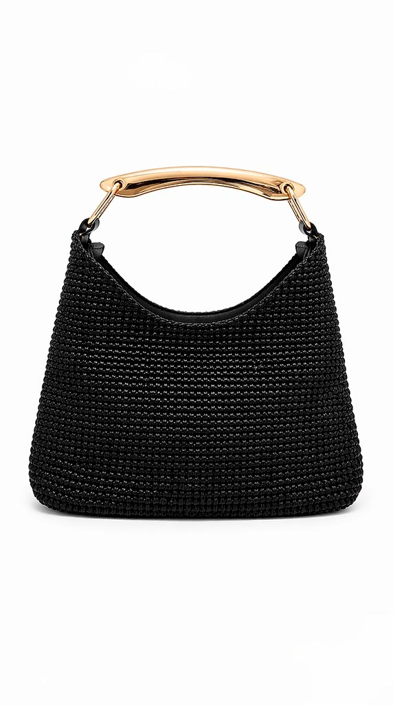 Destaca por su asa rígida en acabado dorado, que le da un aire moderno y refinado, convirtiéndolo en una pieza protagonista. Su tamaño es práctico, permitiendo llevar lo imprescindible sin perder estilo.