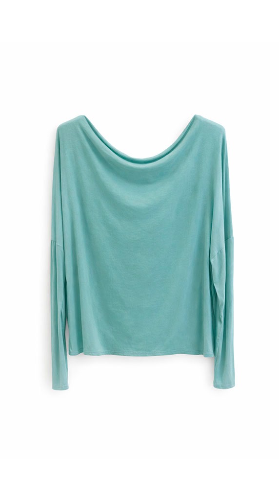 La camiseta Zaya en color verde agua es fresca, suave y muy favorecedora. Un tono delicado que aporta luminosidad al rostro y transmite ligereza, ideal para looks relajados pero cuidados.