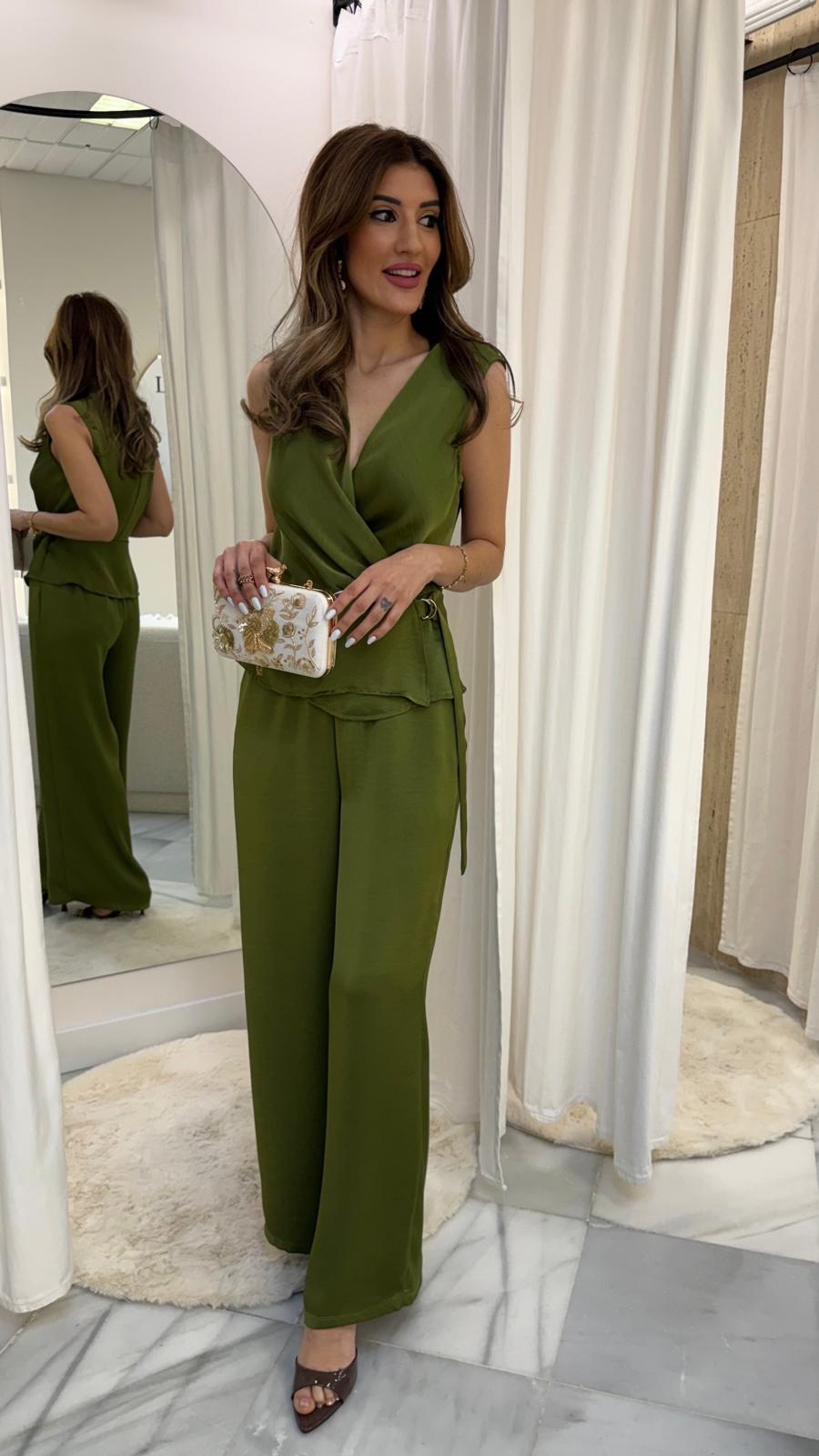 El tono verde oliva aporta personalidad, elegancia y mucha versatilidad, convirtiendo este conjunto en una opción perfecta tanto para looks de día como para estilismos más arreglados.