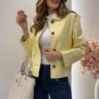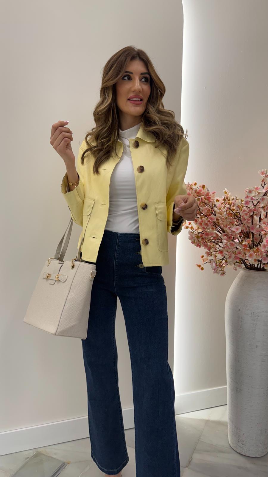 La versión más alegre y llamativa. El amarillo convierte esta chaqueta en una prenda protagonista, ideal para looks de primavera y entretiempo con personalidad y mucha luz.