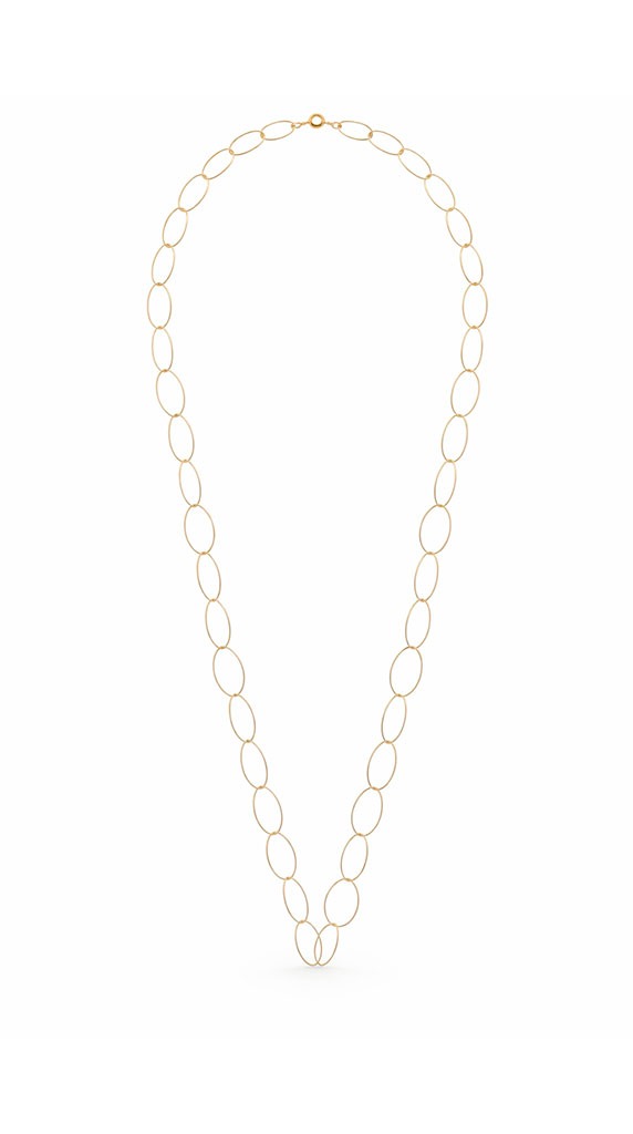 El Collar Dorado es una pieza elegante y ligera que aporta un toque sofisticado a cualquier look. Su diseño de eslabones ovalados alargados crea un efecto estilizado y moderno, perfecto para completar tanto estilismos casuales como más arreglados.