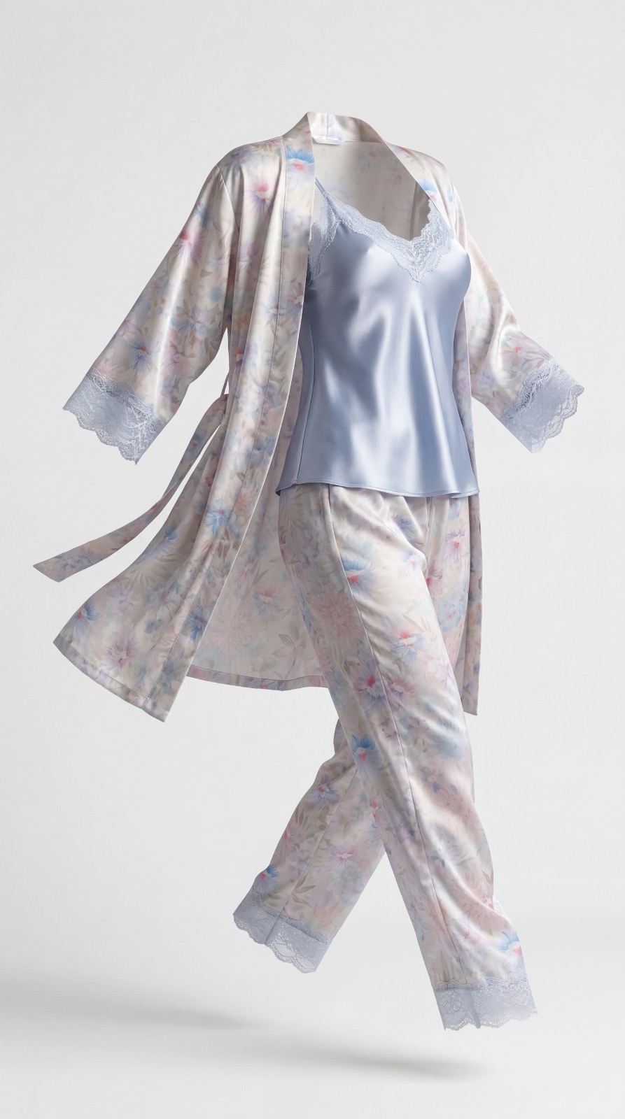 El Conjunto Lady Danbury es un conjunto elegante y muy delicado inspirado en la sofisticación y el romanticismo de los salones de la alta sociedad. Está compuesto por lencera satinada, pantalón fluido y kimono estampado, creando un conjunto completo y muy especial.