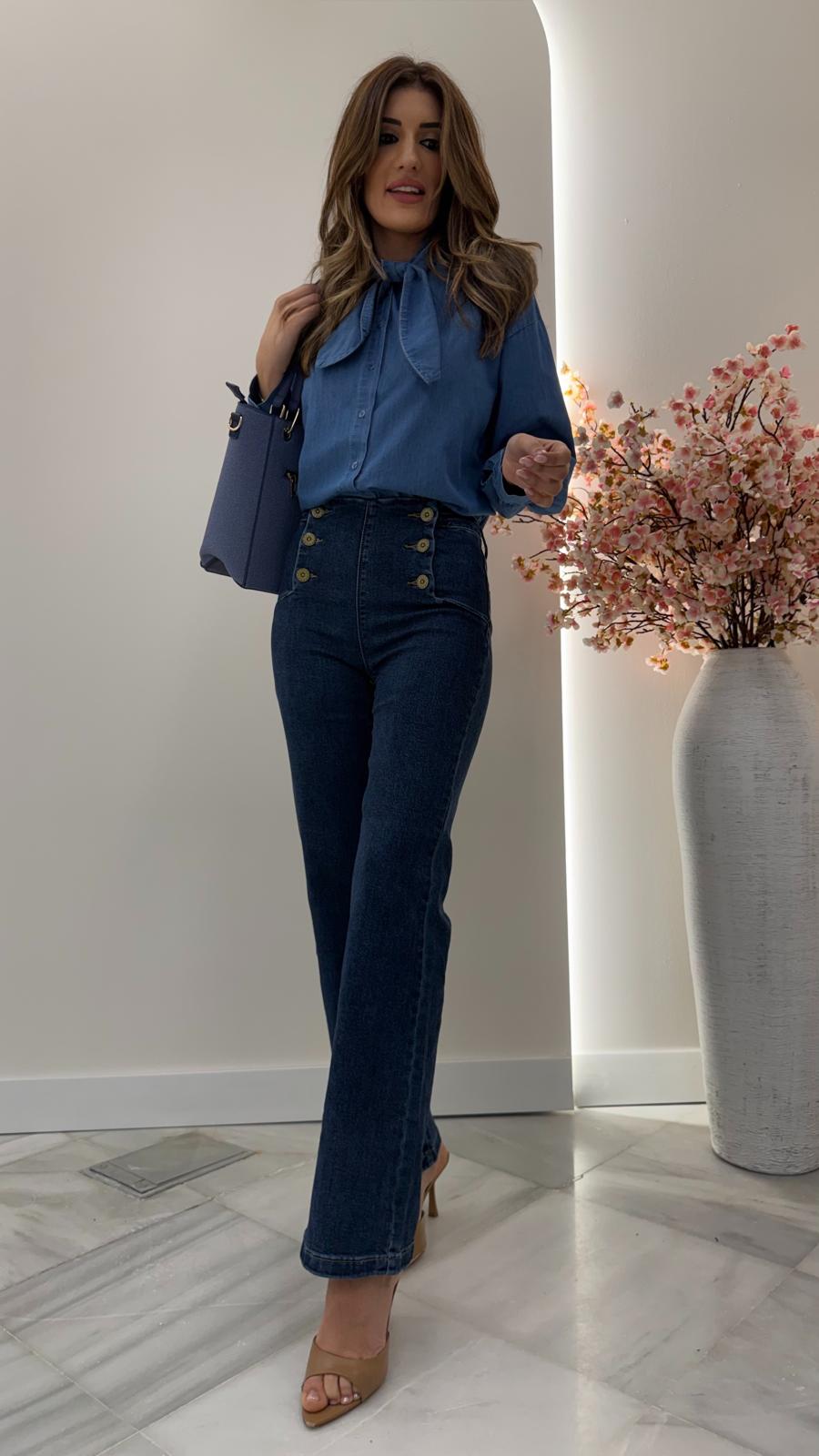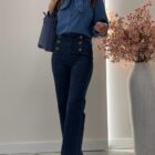 El tono oscuro lo convierte en un vaquero especialmente versátil, perfecto tanto para looks de diario como para combinaciones más arregladas. Un básico renovado que funciona igual de bien con blusas fluidas, camisas o prendas de punto.