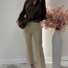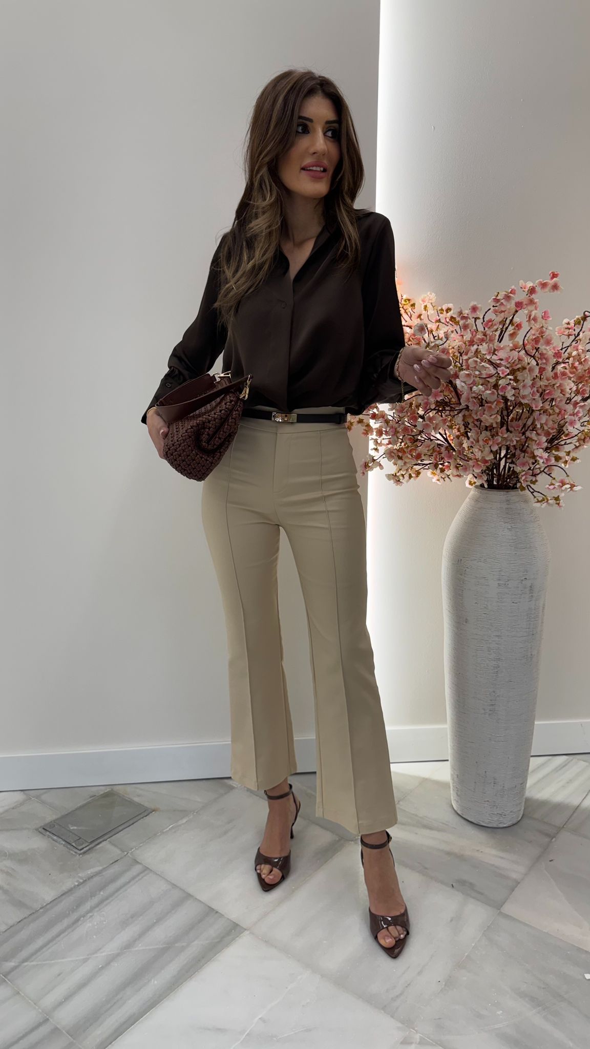 Presenta cintura media-alta, que estiliza la silueta, y línea frontal marcada, ayudando a alargar visualmente la pierna. El corte recto equilibra la figura y resulta favorecedor para distintos tipos de cuerpo. El tono beige aporta luminosidad y facilita múltiples combinaciones, tanto para looks de trabajo como para estilismos más casuales.