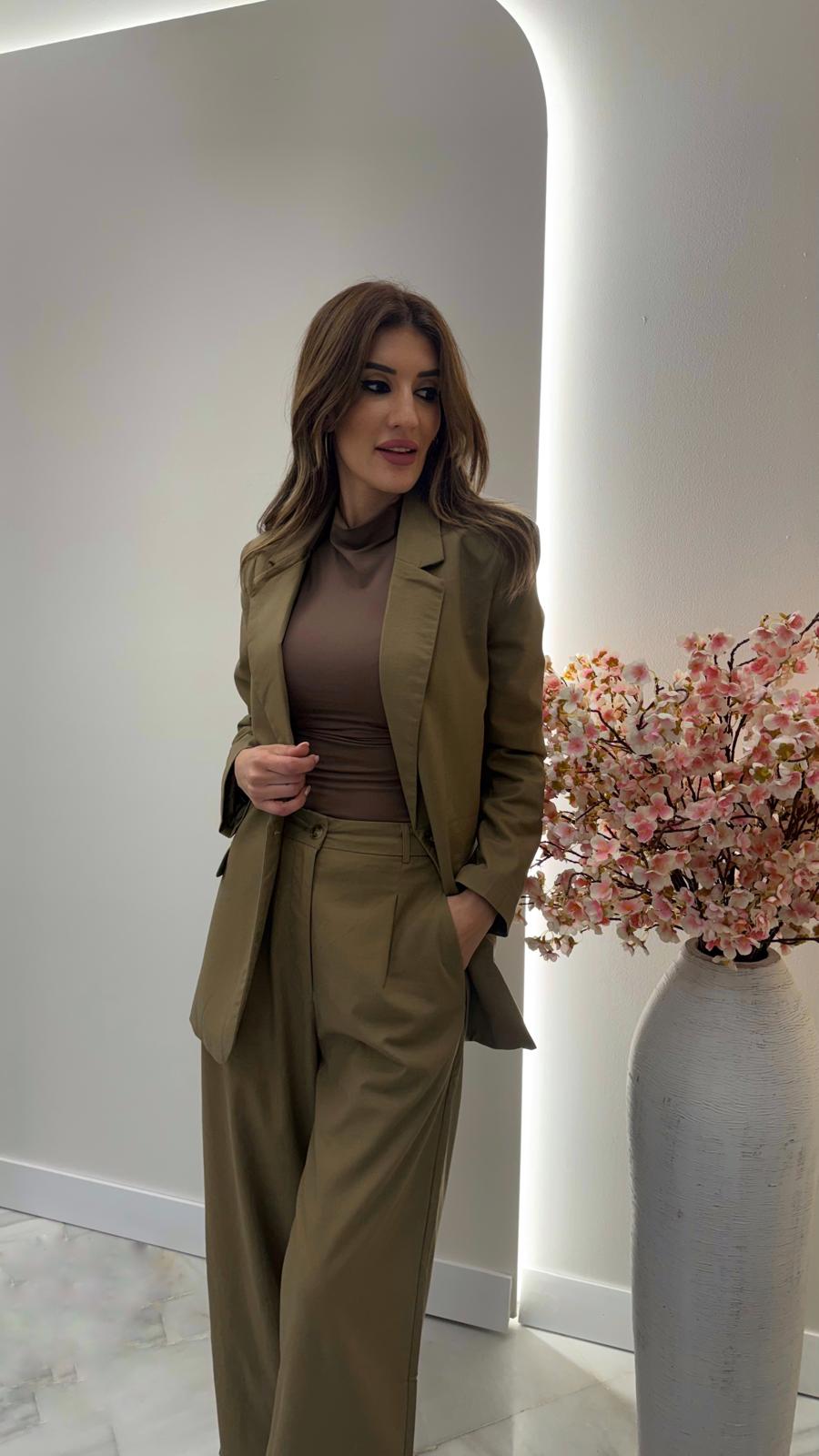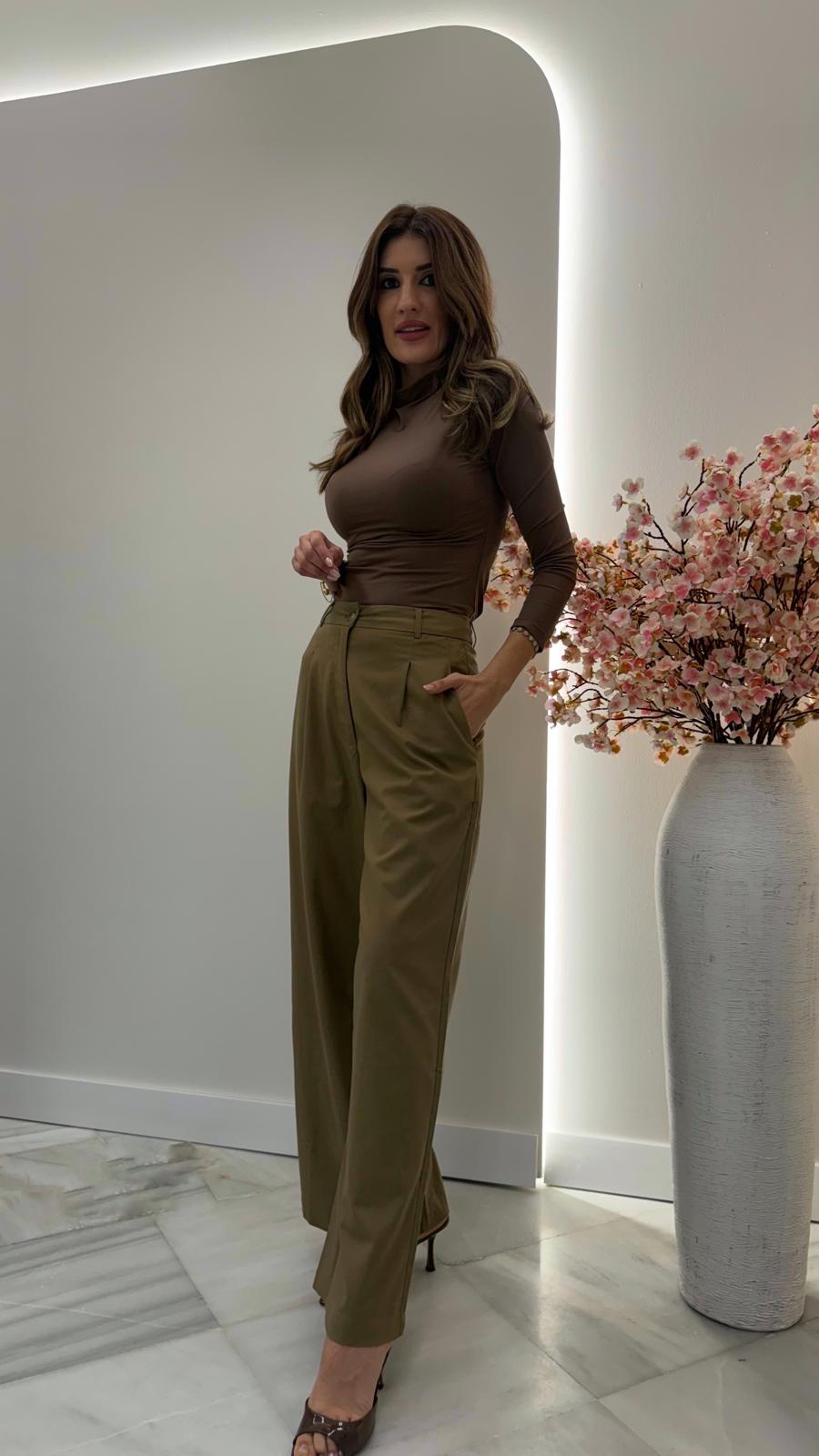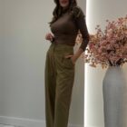El pantalón de lino en color verde oliva aporta un aire natural y actual al armario. Es un tono muy favorecedor que combina fácilmente con neutros y colores cálidos, ideal para looks relajados con un punto moderno. Su tejido ligero lo convierte en un básico cómodo y funcional.