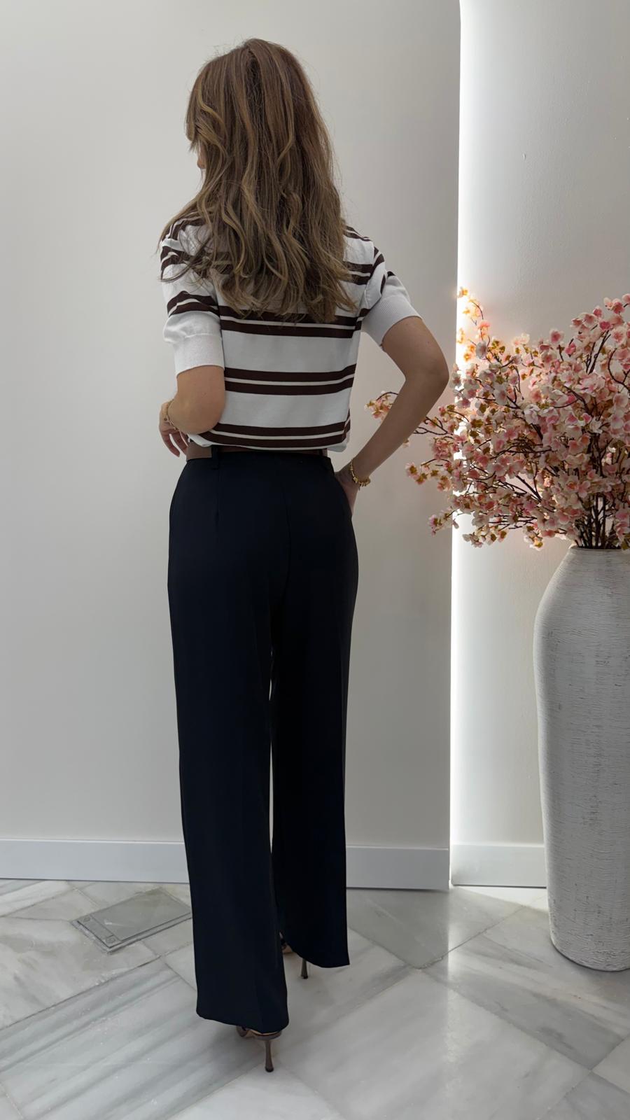 El pantalón Lumiere azul marino es una prenda de vestir esencial que combina sofisticación y comodidad. Su diseño con pinzas en la cintura estiliza la silueta, aportando un toque pulido y refinado que lo convierte en un infalible para cualquier ocasión: oficina, eventos o salidas especiales.