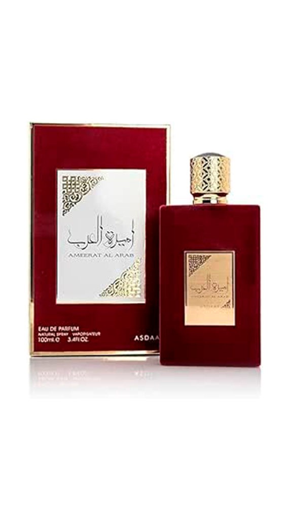 El nombre Ameerat Al Arab significa “Princesa de Arabia”, evocando feminidad, elegancia y un aire exótico que hace de este perfume una elección muy especial.