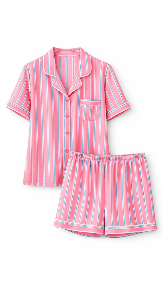 Un pijama con un estilo fresco y veraniego que combina comodidad y elegancia.
