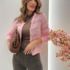 La versión en rosa es delicada, femenina y muy favorecedora. El punto de hilo calado le da un aire romántico sin resultar excesivo, perfecta para suavizar looks más sobrios o acompañar prendas fluidas. Es una rebeca pensada para sumar luz y dulzura al conjunto, manteniendo siempre comodidad y estilo.