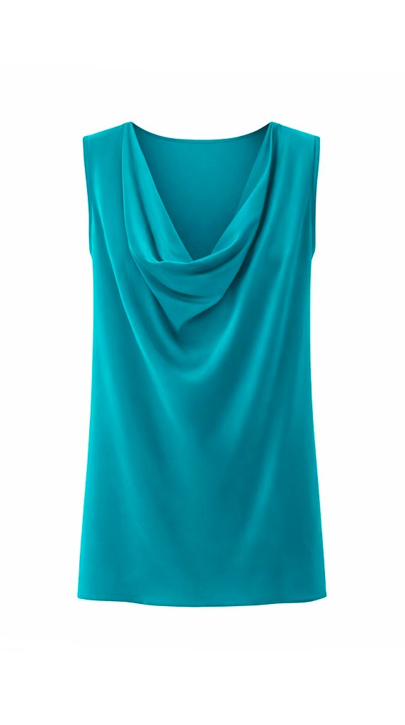 Top en tono turquesa con escote drapeado que aporta movimiento y un aire elegante y muy favorecedor. Su diseño fluido crea una caída suave que estiliza el torso y aporta sofisticación sin esfuerzo.