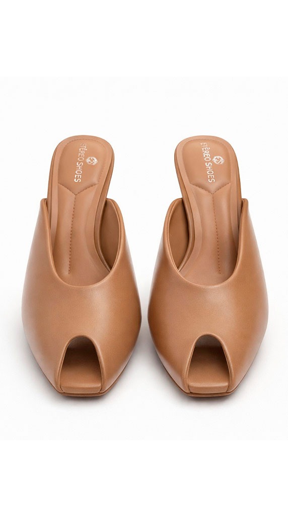 Mule Tacón Peep Toe Camel