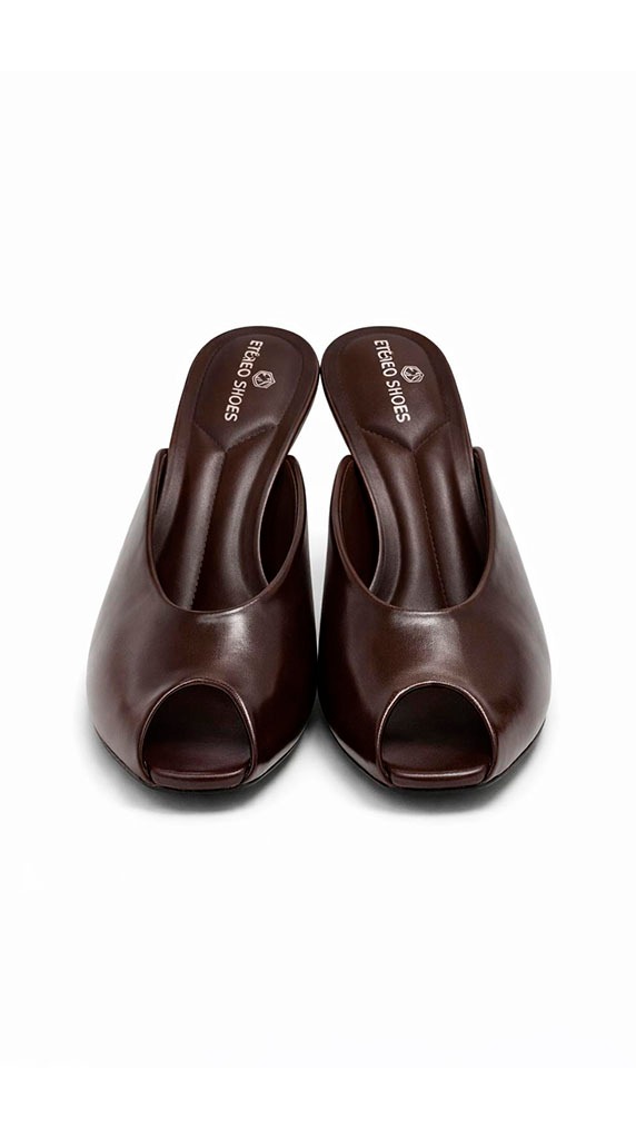 El Mule Tacón Peep Toe Marrón es un zapato elegante y muy versátil que aporta un toque sofisticado a cualquier look. Su diseño minimalista con punta cerrada y abertura frontal tipo peep toe crea una silueta estilizada y muy favorecedora.